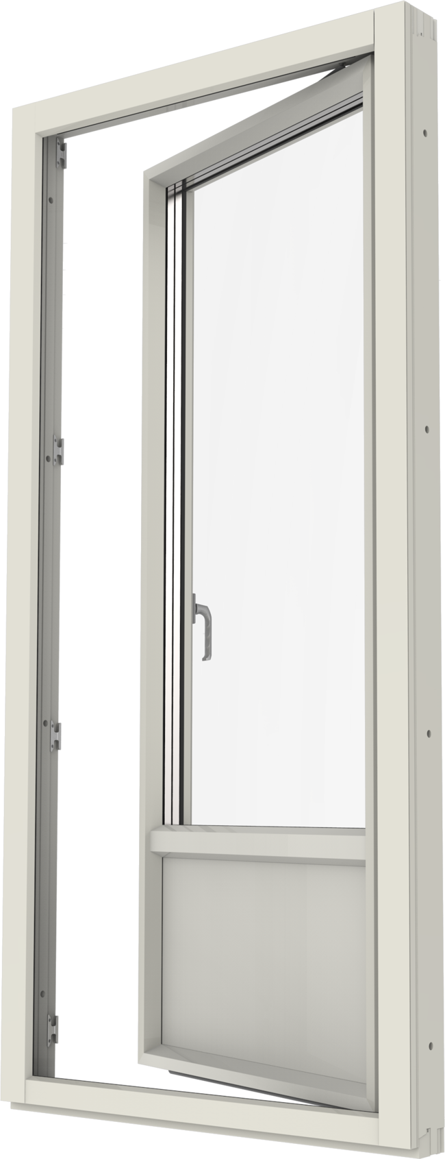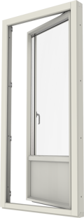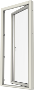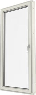 Inåtgående fönsterpardörr. Finns i olika varianter, helglasad, glasad underdel eller fyllning nertill.