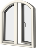 Ett sortiment av flexibla former med halvrunda och välvda fönster. Tillverkas med 2+1 glas eller 3-glas isolerruta.