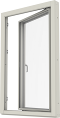 Inåtgående kopplat sidhängt fönster. Erbjuds även som flerluft och i kombinationer.