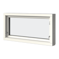 Elitfönster MF Duo som överkantshängt fönster har klassiska gångjärn i överkant. Den här modellen gör sig bra på ställen där det passar med ett brett, lågt fönster.